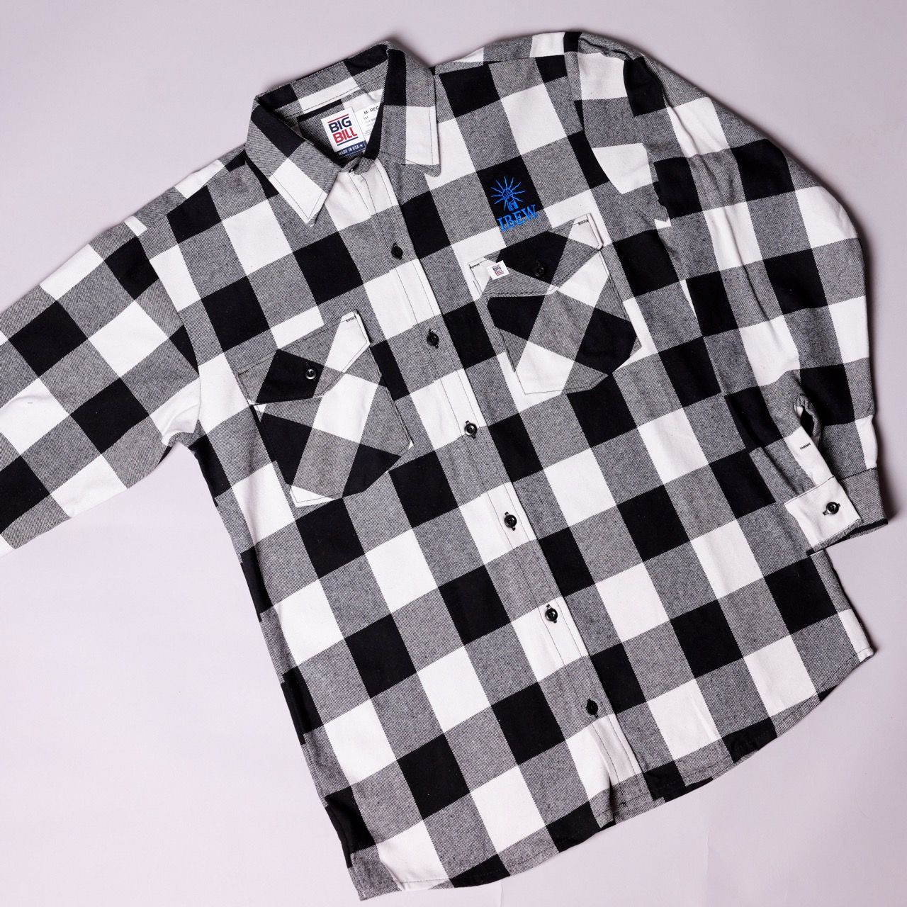 100% Cotton, 9oz woven premium flannel. Features a button-front placket, dual flap chest pockets, buttoned cuffs, and reinforced stress points. IBEW initials with fist and bolts on the left chest.