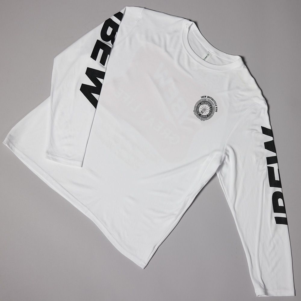 100% Polyester white shirt with custom logo on back and IBEW logo on front and IBEW initials on sleeves. This shirt was used at the 2025 Motorcycle Ride in Champion, PA.