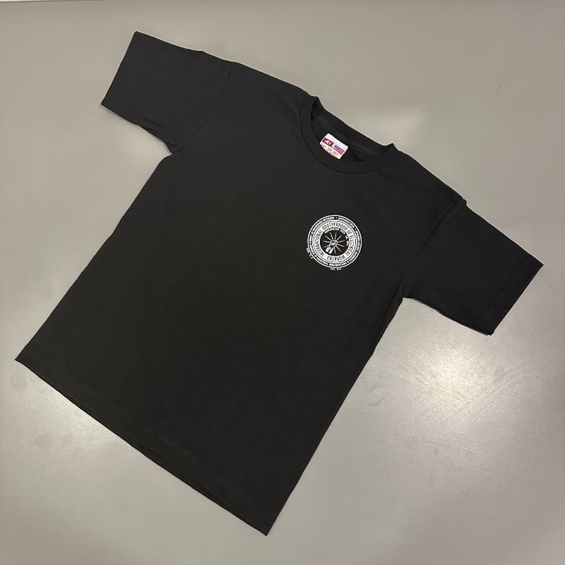 Black youth t-shirt featuring the IBEW logo with “The Next Generation” printed on the back and lightning bolt accents.